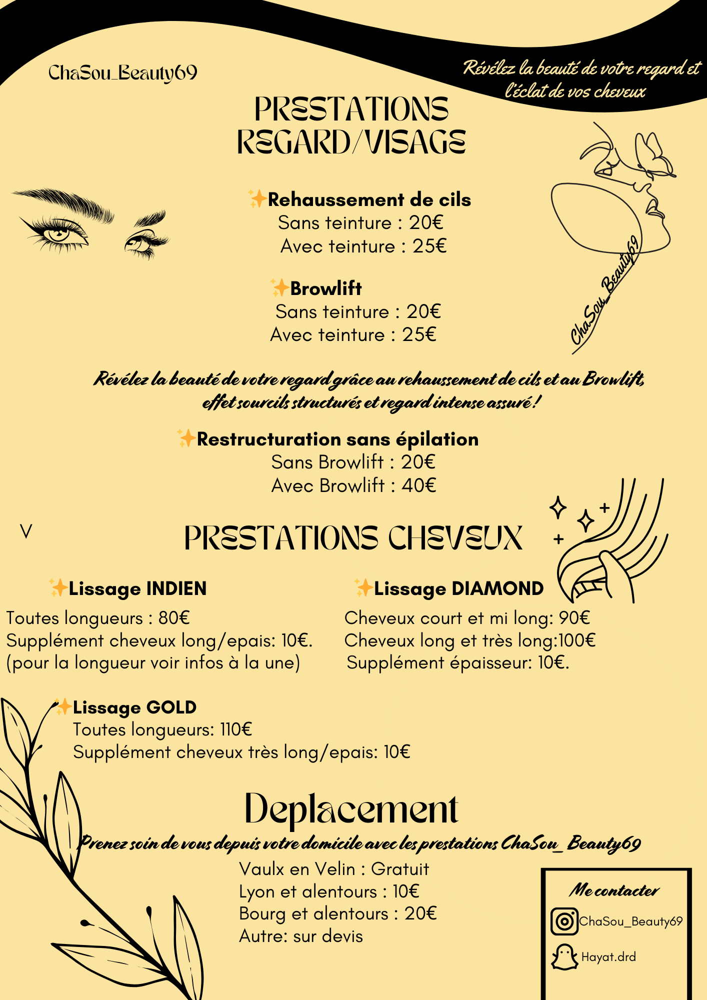 Je propose des lissages, réhaussement de cils et browlift.